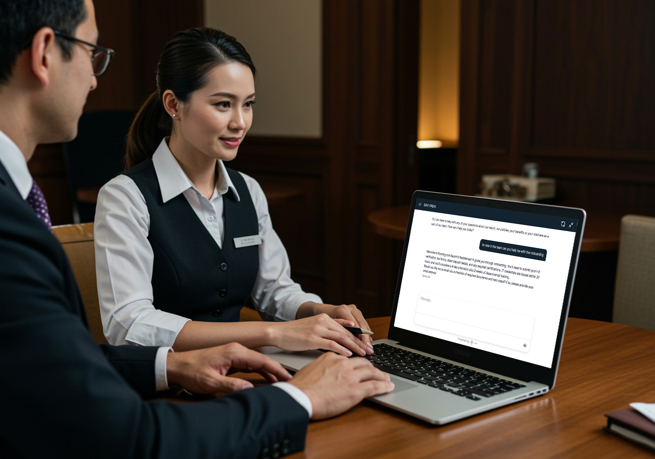 AI-driven virtual assistant provides experienced staff with instant access anytime to information and support on-demand. Whether it’s a quick refresher on room cleaning protocols for housekeeping staff or information on guest requests for front desk employees, these assistants are always available to assist guests. This instant access to training materials and support ensures that hotel staff are always equipped to handle their responsibilities effectively, addressing guest needs and managing guest data.